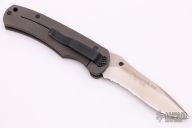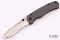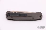 This Pinnacle by Benchmade features a satin finished partially serrated blade with notched thumbrest and single thumbstud. The handle has a bead blasted titanium frame with black tip down stainless steel clip. Comes with original box and papers. First Production Run 1 of 1000. Excellent Condition.