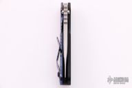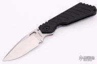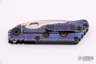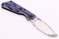This Mick Strider SNG Fatty framelock folder features a stonewashed blade with thumbhole and notched thumbrest. The handle has a black aluminum and orange peel finished and anodized titanium frame with titanium clip, tip up carry. Jimping on blade spine. Nice lockup, detent, and blade seating. Excellent condition.