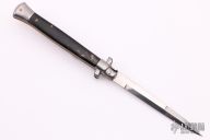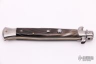 This Swivel Bolster Auto has a stainless steel spear point blade. The handle is composed of a steel front and rear bolsters, brass liners all complemented by buffalo horn scales. Excellent Condition.