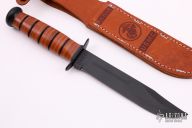 You may know us from our high quality military, hunting, sporting, all-purpose utility, and outdoor survival knives. We offer hundreds of quality cutlery products and accessories sold through independent retailers, distributors, mail order catalogs and our online knife store. We've been making knives since 1898 and each knife undergoes our unique manufacturing processes and testing to ensure corrosion resistance, strength, edge holding ability, and an out-of-the-box razor sharp cutting edge. On December 9, 1942, after the start of World War II, KA-BAR submitted a knife to the United States Marine Corps in hopes that it would become general issue to that branch of the military. Working with the Marine Quartermaster Department the original design was revised and production began of an improved fighting and utility knife for the Marines. As the War escalated, the USMC KA-BAR knives became so well recognized for their quality and so abundant in number that "Kabar" became the name by which many referred to this knife pattern, regardless of whether the knife was manufactured at the actual KA-BAR facility. The USMC KA-BAR was adopted by not only the Marines, but also the Army, Navy, Coast Guard and Underwater Demolition Teams.