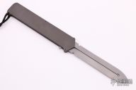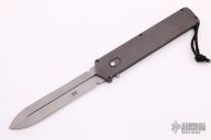 This OTF automatic features a double-edged bead blast blade and aluminum handle. Fires via push button and retracts by holding the button and moving the slider on the side of the knife. Very strong coil spring action. Numbered 142/200. Excellent condition.