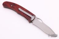"The Lobo automatic is a double-action automatic knife that can function as a one handed opening locking-liner knife or be instantly fired in the automatic mode. The Lobo has a 3.5 inch blade to handle any cutting chore and a convenient stainless steel pocket clip. The automatic firing mechanism is hidden under the handle and is activated by sliding the left side handle scale towards the top of the knife. Because there are no apparent buttons on the outside of the handle the fact that the Lobo is an automatic is known only to its owner. This makes the Lobo convenient to carry and use anywhere." This Lobo features a bead blasted blade and cocobolo handle. Excellent condition.