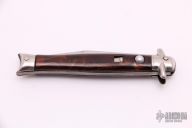 This Colonial Sabre Auto by Shur-Snap features a satin finished sabre blade. The handle has steel bolsters and red acrylic scales with steel liners. Has some blade play and light scratches, but good condition for its age.