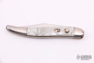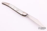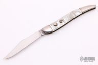 This Antique Auto by Hammer Brand feature mirror finished clip point blade. The handle as stainless steel bolsters front and rear, acrylic scales, stainless steel liners and backspacer, has safety. Has some light scratches, otherwise good condition for its age.