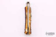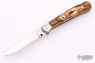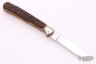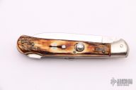 This Vintage auto by Boker features a drop point blade, nickel silver bolsters, stag scales, brass liners and stainless steel backspacer. Light scratches, otherwise excellent condition. Includes Boker box.