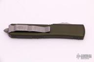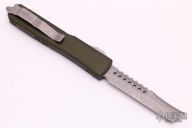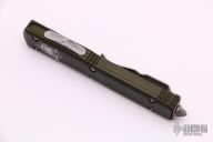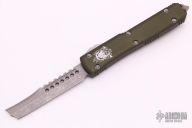 This USN G9 Ultratech Hellhound Straight Razor by Microtech Knives features an apocalyptic finished blade with notched thumbrest. The handle is green aluminum with blasted hardware and a tip down apocalyptic finished stainless steel clip. Serial number 186. Dated 09/2017. From the 2017 USN Gathering. Comes with original box and papers.