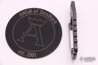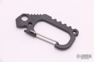 This Carabiner V3 by Jens Anso features 0.192" zirconium construction with heat colored finish. Steel spring gate. The design features an integrated bottle opener, pry tip and lanyard hole. Excellent condition. Comes with original box and papers.