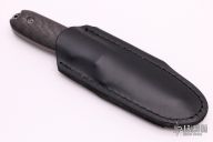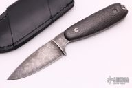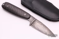 This Guardian3.5 by Bradford Knives features a dark tumble finished drop point blade with notched thumbrest, .151" blade stock and 1.170" blade depth. The handle is comprised of contoured carbon fiber scales over full tang construction. Exposed tang pommel with lanyard hole. Includes a black leather sheath. Excellent condition.