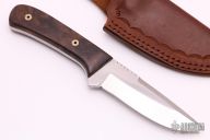 "In the mid 2000's I cobbled together a grinder and ruined a whole bunch of steel. These days, I have a full shop and much better skills, but my average output is only a couple of knives per month. I have enjoyed working with Damascus making "fancy" hunters, but lately I have realized that the market is in more utilitarian knives. I am currently using quite a bit of m390 and the best heat treatment available today. My knives cut. I have enjoyed a slow but steady stream of customers who want me to build them a one-off custom knife. I do my own leather or kydex work and build presentation boxes to suit the customer. The challenge of making someone else's "dream knife" keeps me from getting bogged down in a few stock patterns. As a side project, I am making some "art" knives with aspirations of being mentioned in the same breathe as some of the giants in our stock and trade. I have a lot to learn still, but the knives I am producing now are designed to appear and perform as well as anything on the market today."