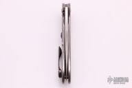 This Gyrfalcon framelock folder by Eric Ochs features a stonewashed blade with false top edge, Elmax blade steel. Handle is comprised of a tumbled titanium frame, MokuTi backspacer, tip up clip and lock bar stabilizer. Nice blade seating, detent and lockup, rides on bearings. Great work. Comes with zippered case. Was recently spa'd by Eric. This knife was sharpened with a Wicked Edge sharpener and is hair popping sharp. Excellent condition.