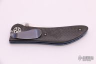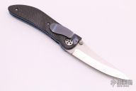 This knife by Allen Elishewitz features a satin finished blade with dual thumbstuds. The handle has carbon fiber scales, anodized titanium liners and tip down clip. Nice detent, lockup and blade seating. Has a few light scratches, otherwise excellent condition. Comes with a zippered case.