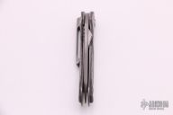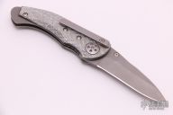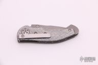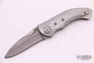 This knife by Allen Elishewitz features a bead blast finished blade with single thumbstud. The handle has silver twill scales, blasted titanium liners and tip down clip. Nice detent, lockup and blade seating. Has a few light scratches, otherwise excellent condition. Comes with a black nylon sheath.