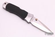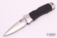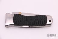 This Vintage Large Tomcat lock back by SOG features a satin finish blade with false top edge and dual thumbstuds. The handle has satin finished stainless steel bolsters, liners and backspacer, checkered rubber scales, custom fitted tip down stainless steel clip. Strong lock up. Has some light scratches, otherwise good condition.