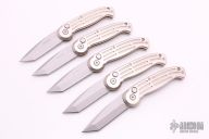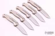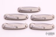 This is a set of 5 Boker Magnum Autos. Silver tanto blades, silver aluminum handles with tip down stainless steel clips. Excellent unused condition. These retail for $35 new.