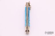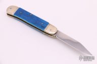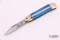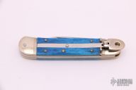 This leverlock auto by Hubertus features a clip point blade, nickel silver double bolsters, dyed bone scales, and brass liners and pins. Opens with a nice snap. Very fast opening. Has some patina and light scratches, otherwise excellent condition.