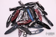 30 Side Opening Autos. Satin finished blades with coated aluminum handles. Mostly all in excellent condition, the photos following the first photo is of a random knife out of the pile, but they are all the same model.
