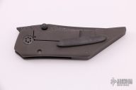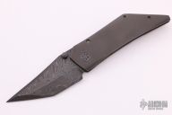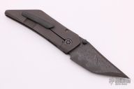 This Full Size Creep by Griffin Bladeworks features a harpoon style XHP boomerang Core Damascus blade with dual zirc thumbstuds and a notched thumbrest/flipper tab.  The handle features a dark bead blasted titanium frame and zirconium pocket clip/backspacer.  Includes a hard case.  Excellent Condition.