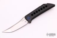 The Wingman EDC Yurei is an ultra-high end production knife with lots of little features a true enthusiast will appreciate. The stylish David Santiago design keeps a low profile and doesn't call too much attention to itself, but retains a unique beauty that will surely impress. The handle is made of titanium, precision milled to exacting standards for a early lockup from the lockbar, no blade play, and handle construction that looks almost integral. The trailing point blade is made of Bohler M390, and deploys smoothly thanks to the Lee Williams KickStop flipper and the ceramic ball bearing pivot. As a final touch, the knife has a custom propeller pivot.