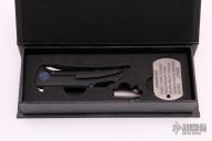 - Comes with a titanium pivot tool and a titanium dog tag engraved with the features of the knife.