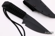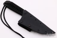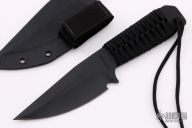 The Fixed Blade by Mick Strider features a black clip point blade with false top edge, .214" Blade Stock and 1.658" Blade Depth, full tang construction with black paracord. Comes with kydex sheath. Excellent condition.