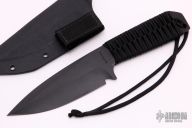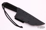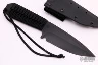 The Fixed Blade by Mick Strider features a black spear point blade with false top edge, .219" Blade Stock and 1.784" Blade Depth, full tang construction with black paracord. Comes with kydex sheath. Excellent condition.