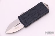 This Microtech Exocet features a 204p stonewash finish spear point blade. The handle is comprised of black aluminum handles and a stainless clip that doubles as a money clip dated 09/2019 S/N 1550. Comes with original box and papers. Has some light scratches, otherwise excellent Condition.
