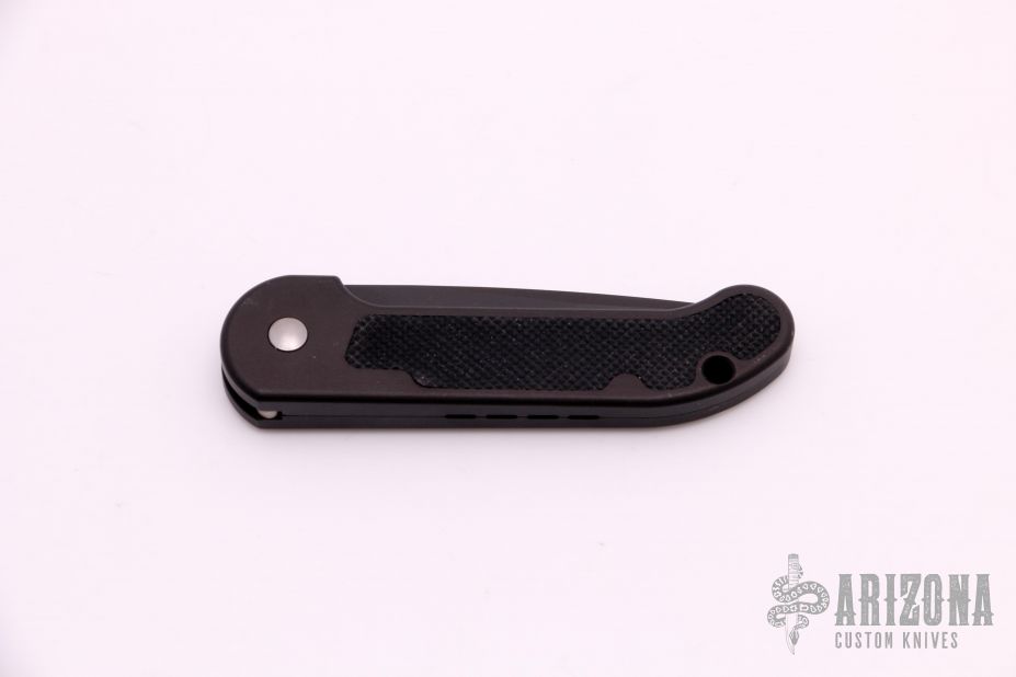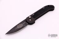 This Mini UDT by Microtech has a black plain edge blade. The handle is black aluminum with non-slip inserts. Side opening coil-spring automatic. Dated 08/2002 and s/n 1318. Excellent condition.