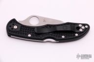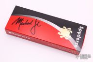 This knife by Spyderco was customized by Michael Janich, it has a satin finished blade with thumbhole opener and notched thumbrest. The handle has black FRN scales and a 4-way reversible stainless clip. Comes with original box. Excellent condition.