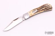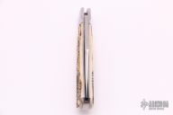 This Lanny's Clip is a Case/Bose collaboration from 2020, it features a satin finished blade with nail nick. The handle has pinched and fluted stainless steel bolsters, stag jigged bone covers with stainless escutcheon, stainless steel liners and spring. Comes with original box, zippered case and papers. Excellent condition.
