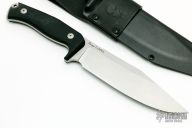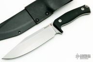 This SFS by Akeron knives is a Tony Lopes design, it has a tumbled clip point blade with notched thumbrest and tang, .198" blade stock and 1.725" blade depth, full tang construction with black G-10 scales and a lanyard hole. Comes with a kydex and black leather sheath and original box.  Excellent Condition.