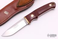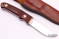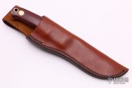 This Schrade Loveless is #1036 of a limited edition. Product # RL-2. Blade is 3/16" thick and 1" deep. Has a red Derlin handle with brass guard. Comes in original brown leather sheath. Excellent condition.