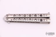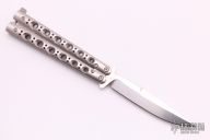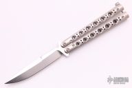 This Model 62 Balisong by Benchmade features a stonewashed spear point D2 blade with a false top edge. The handle has stainless steel handles and latch. Excellent condition. First Production Run #76 of 300.