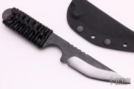 This Slim Tanto by GHK features a tanto blade with notched thumbrest, .253" blade stock and 1.006" blade depth, full tang construction with epoxied cord wrapped grip. Comes with a kydex sheath. New from maker.