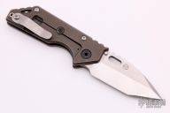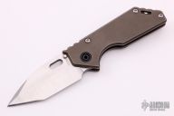 This 3/4 AR by Strider Knives features a stonewashed blade with notched thumbrest and thumbhole. The handle has a tumbled and anodized titanium frame with a stonewashed titanium tip up clip. Nice detent, lockup and blade seating. Excellent condition. Comes with a zippered case.