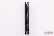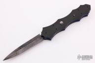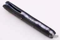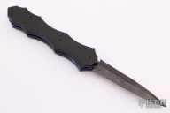 This amazing side opening auto features a Chad Nichols Twist Damascus blade with false top edge. The handle has 3K twill weave carbon fiber scales, fileworked and anodized titanium liners, and a fileworked stainless steel backspacer. Nice detent, lockup, blade seating and function. Excellent condition. Paul Panak said this is one of two knives that has 3K twill weave carbon fiber. This is also the only Grim Reaper built with a safety.