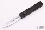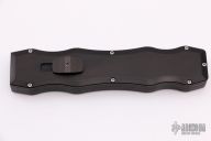This Sand Shark OTF automatic features a bead blast finished double edge blade and black aluminum handle. The Sand Shark was a limited production and is no longer being made. Comes with original box and cloth pouch. Excellent condition.