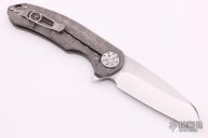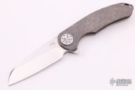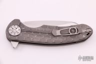 This Large F3 by Curtiss Knives features a stonewashed blade with notched thumbrest and flipper. The handle has a milled and tumbled titanium frame with a matching tip up titanium clip. Polished titanium hardware. Rides on bearings, nice detent and lockup. Comes with original zippered case and COA dated 8-5-20. Excellent condition.