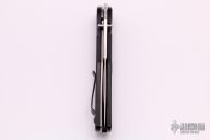 This Century Starfighter from Bob Terzuola features a tumbled blade with dual thumbstuds. The handle has carbon fiber scales with a single titanium liner, black backspacer, tip up titanium clip, lanyard hole. Nice detent, lockup and blade seating. Excellent condition.