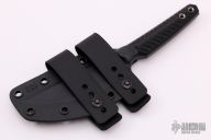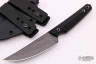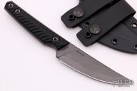 The Unmei is a Japanese Kwaiken style fixed blade knife that excels in both concealed and everyday carry roles. The RMJ rendition of the Kwaiken style functions well in both urban and rural settings and is a great companion for any adventure. Made from .130'' thick Nitro-V steel, the Unmei weighs in at 3.5 ounces. The light and thin design makes this a great knife for any slicing needs. The blade has a Tungsten Cerakote finish for corrosion and glare resistance, and added durability. The beveled and contoured G10 grips feature diagonal texturing for an aggressive but comfortable and secure grip. The Unmei comes with a molded kydex scabbard including two MAD straps that allow for scout carry (horizontal) and inside the waistband (IWB) vertical carry. The Unmei is MOLLE compatible and can also be attached to any pack, plate carrier or similar gear with PALS webbing. The scabbard will work with most of the popular clips and mounts like the Discreet Carry Concepts Clip and UltiClip. Comes with original box and papers. Excellent condition.
