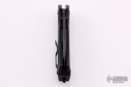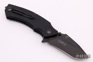 This ASO 516 by Fox Cutlery features a black blade with fullers, notched thumbrest, dual thumbstuds and a flipper. The handle has black G-10 scales and backspacer, black stainless steel liners and tip up reversible clip, black hardware. Excellent condition.