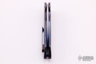 This Full Dressed Linerlock Flipper by Laramie Jackson features a Chad Nichols San Mai Damascus blade with notched flipper and false top edge. The handle has Chad Nichols MokuTi scales and tip up clip, anodized titanium liners, barrel spacers and screws, lanyard hole at the butt. Rides on bearings, nice detent, lockup and blade seating. Excellent Condition.
