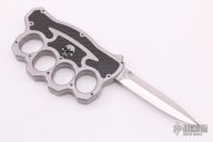 This Custom Cased K-Razor and Knuckle set by Burn Knives features a mirror polished double edged blade with satin flats. The handle has a 440C stainless steel knuckle frame with carbon fiber inlays. Comes with a matching 440C stainless steel set of knuckles with carbon fiber inlays. Comes in a custom wooden box with a note from Paul to the original owner. The knife is a prototype