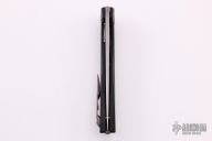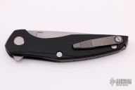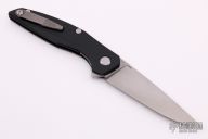 This model 111 flipper by Shirogorov Knives has a flat ground blade with flipper. Handle is contoured/textured black G-10 with a titanium tip up clip and backspacer, stainless steel single liner. Dead center blade seating, excellent detent and lockup, and flips superbly. Comes with a zippered case. Knife is in excellent condition.