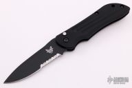 This Ares Stryker Auto by Benchmade has a black partially serrated blade, black aluminum frame with tip up stainless steel clip and a safety. Comes with original box. Excellent condition.