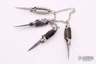 Miniature Italian Stiletto Charm Bracelet with 4 push button auto picklocks. Comes with jewelry box. Excellent condition.