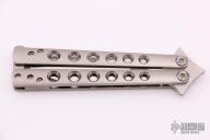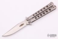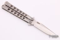 This Balisong by Les Voorhies features a satin finished blade and a satin finished titanium handle with latch at the butt. Comes with a velcro case. Rides on IKBS. Excellent condition.