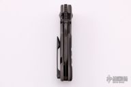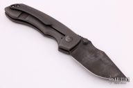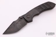 This Custom Hybrid Moment by Sean Kendrick features a custom finished blade with dual thumbstuds and a notched thumbrest. The handle has an orange peel finished zirconium bolster, carbon fiber scale, orange peel finished zirconium backspacer, orange peel finished and tumbled titanium frame, tip up orange peel finished zirconium clip. Nice detent, lockup and blade seating, rides on bearings. Comes with a velcro case. Excellent condition.