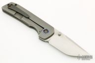 This Chariot by Sam Johnston features a hand rub satin finished blade with dual thumbstud. The handle has a zirconium bolster, carbon fiber scale, timascus pivot collars and backspacer, and a zirconium tip up clip, tumbled titanium liner and frame. Rides on bearings, nice detent, lockup and blade seating. Excellent condition. Comes with a zippered case.