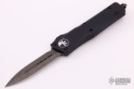 This Combat Troodon by Microtech Knives features a Damascus double-edged blade. The handle is black aluminum, ringed copper hardware, and a black stainless steel pocket clip. Dated 03/2017 and #027 on clip. Excellent work. Comes with original box and papers. Excellent condition.