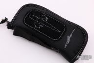 This Custom Combat Troodon by Marfione Custom Knives features a two-tone Apocalyptic DLC finished Hellhound Tanto blade with a notched thumbrest. The handle is hand sculpted black aluminum with ringed DLC hardware and stainless steel pocket clip. The clip is marked "A. Marfione" and "S. Marfione" and dated 03/2017, and s/n 012, dagger logo is on the clip. Comes with original box, nylon zippered case and papers. Excellent condition.